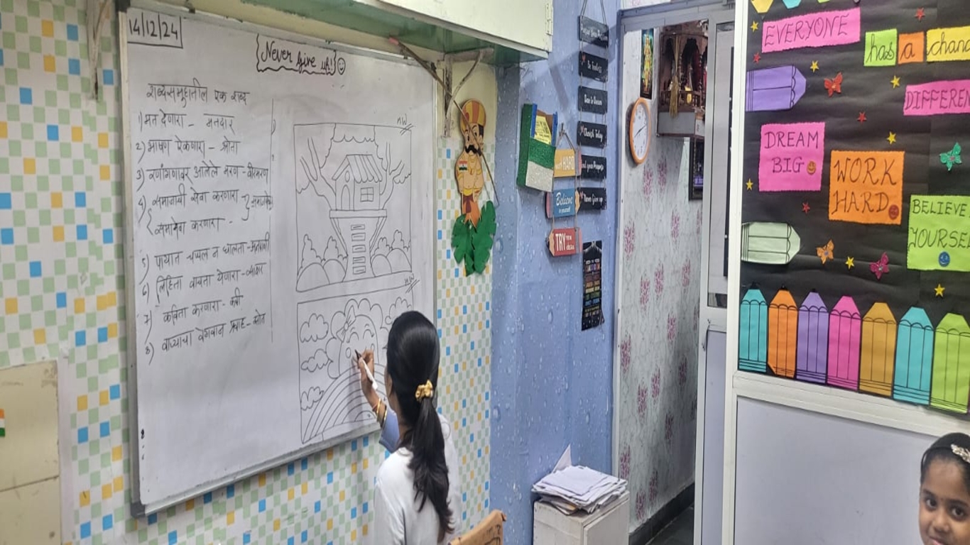 SKP Ma’am welcomed her with open arms and started teaching her from the basics—patiently, lovingly, and consistently. Within a few months, not only did her confidence grow, but her marks started rising too. From struggling to pass, she now scores 50–60% in all subjects!
